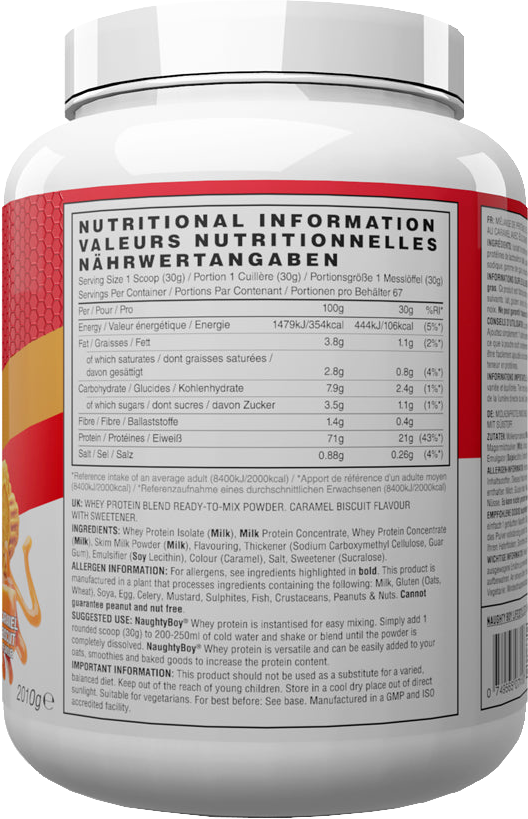 Naughty Boy Advanced Whey è un integratore proteico in polvere a base di proteine del siero di latte (whey), progettato per supportare la crescita e il mantenimento della massa muscolare, favorire il recupero dopo l’allenamento e completare il fabbisogno proteico giornaliero. La formula è istantizzata, si miscela facilmente ed è disponibile in numerosi gusti dessert-inspired adatti anche da aggiungere a frullati, avena o ricette proteiche.