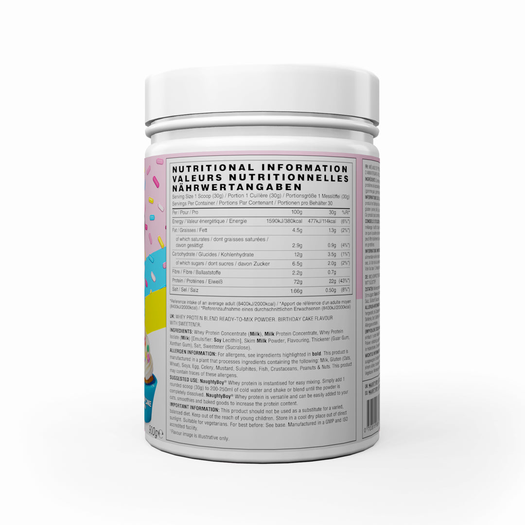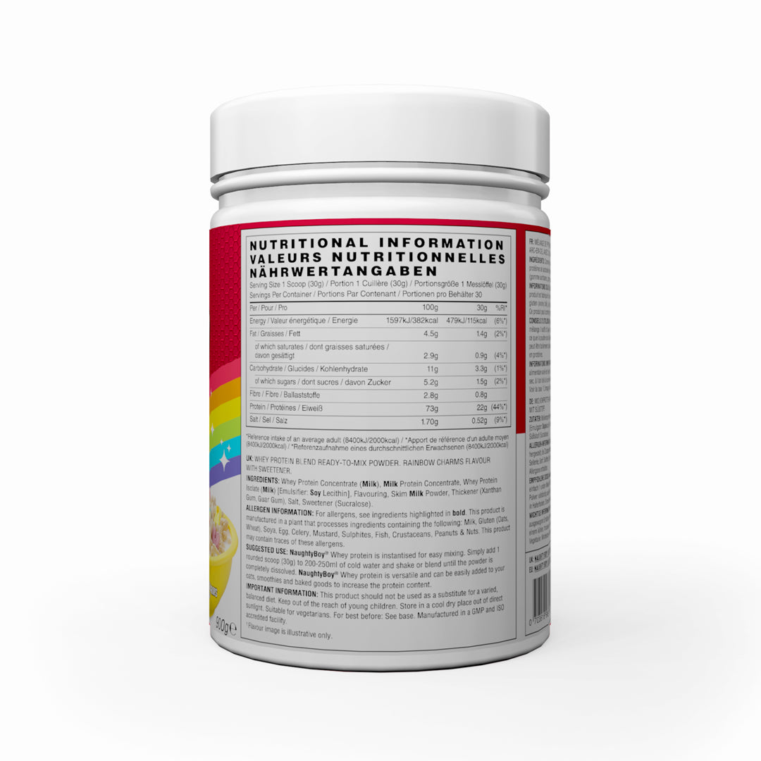 Disponibile in molti gusti popolari (es. Banoffee Pie, Cookies & Cream, Birthday Cake, Rainbow Charms, White Chocolate Salted Peanut, Strawberry Milkshake, ecc.).